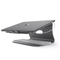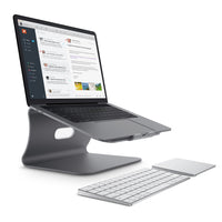 The Bestand laptop stand is constructed from a single piece of aluminum with a stand-blasted silver anodized finish, transforming your laptop into a stylish and stable workstation.