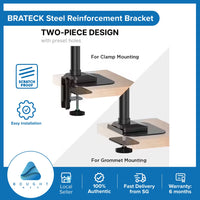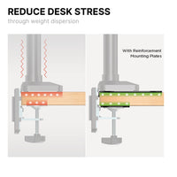 ⭐REINFORCEMENT SOLUTION: A steel reinforcement bracket solution that adds extra support to your desk clamp and grommet monitor setup.