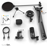 USB Microphone Kit - direct plug & play connection to Mac and Windows. No additional hardware for recording vocals or podcasts