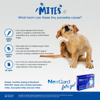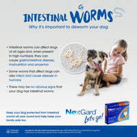 NexGard Spectra Chewable Tablets offer a comprehensive solution for your dog's flea, tick, and heartworm protection needs. These beef-flavored tablets are not just delicious but also highly effective. Within hours of administration, NexGard Spectra starts to kill fleas and ticks, preventing further infestation. Additionally, it protects against heartworm disease, ensuring your furry friend stays healthy and happy.