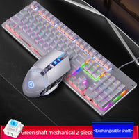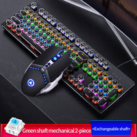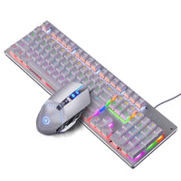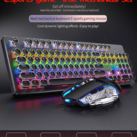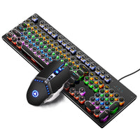 1) Mechanical keyboard: Full-size keyboard 104-key mechanical gaming keyboard with blue switch. Fast button response speed, moderate resistance, precise tactile feedback, and a "click" sound.